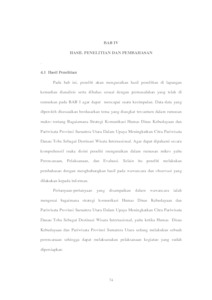 Hasil penelitian, menunjukkan dengan menggunakan subfokus 1.Perencanaan dalam upaya meningkatkan Citra Pariwisata Danau Toba, Humas Dinas Kebudayaan Dan Pariwisata Provinsi Sumatera Utara telah melakukan upaya dan program ataupun strategi komunikasi yaitu Penataan Objek wisata dan Promosi; Advertising, Public Relation. 2.Pelaksanaan program yang telah direncanakan Humas Dinas Kebudayaan Dan Pariwisata Provinsi Sumatera Utara sejauh ini telah direalisasikan yakni dengan pembangunan fasilitas serta melakukan kegiatan kegiatan dan Promosi. 3. Evaluasi juga perlu dilaksanakan oleh Humas Dinas Kebudayaan Dan Pariwisata Provinsi Sumatera Utara Terhadap program program yang belum bisa terlaksana , sehingga bisa diketahui permasalahan yang terjadi dilapangan mengenai kendala-kendala yang menyebabkan program-program dalam meningkatkan citra pariwisata danau Toba yang tidak bisa terlaksana dengan maksimal. Kedepannya diharapkan dengan adanya evaluasi, kendala-kendala dalam pelaksanaan program-program bisa di atasi dan pelaksanaan kebijakan dapat tercapai secara maksimal.Kesimpulan pada penelitian ini Humas Dinas Kebudayaan Dan Pariwisata Provinsi Sumatera Utara telah berhasil meningkatkan citra pariwisata danau toba dengan bertambahnya jumlah wisatawan mancanegara yang berkunjung ke wisata Danau Toba Saran penelitian ini agar masyarakat yang berada dikawasan Danau Toba dapat menjaga segala fasilitas yang sudah disediakan oleh Humas Dinas Kebudayaan Dan Pariwisata Provinsi Sumatera Utara serta mengembangkan dan meningkatkan citra pariwisata