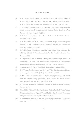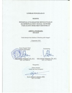 | Uncontrolled Keywords: | OCR, Neural Network, Backpropagation, Dokumen Sertifikat, MSER |