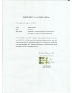 UNIKOM_ADITYA NUGRAHA_SURAT KETERANGAN ORISINALITAS.pdf - Published Version
