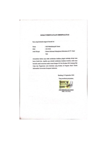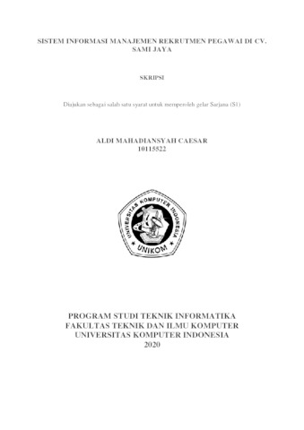 Caesar, Aldi Mahadiansyah (2020) Sistem Informasi Manajemen Rekrutmen Pegawai Di Cv. Sami Jaya. Other thesis, Universitas Komputer Indonesia.