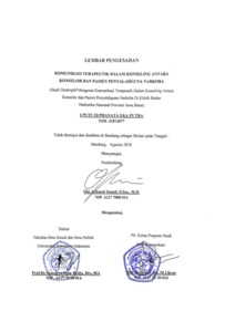 Putra, I Putu Supranata Eka (2018) Komunikasi Terapeutik Dalam Konseling Antara Konselor Dan Pasien Penyalahguna Narkoba (Studi Deskriptif Mengenai Komunikasi Terapeutik Dalam Konseling Antara Konselor dan Pasien Penyalahguna Narkoba Di Klinik Badan Narkotika Nasional Provinsi Jawa Barat). Other thesis, Universitas Komputer Indonesia.