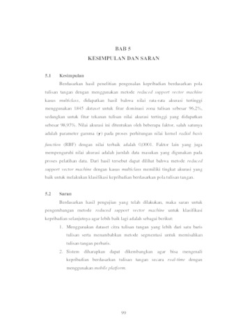 | Uncontrolled Keywords: | Grafologi, Kepribadian, Tulisan Tangan, Pemrosesan Citra, Reduced Support Vector Machine. |