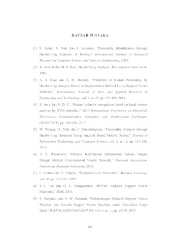 Alfarisi, Luthfi (2020) Pengenalan Kepribadian Berdasarkan Pola Tulisan Tangan Menggunakan Metode Reduced Support Vector Machine (RSVM). Other thesis, Universitas Komputer Indonesia.