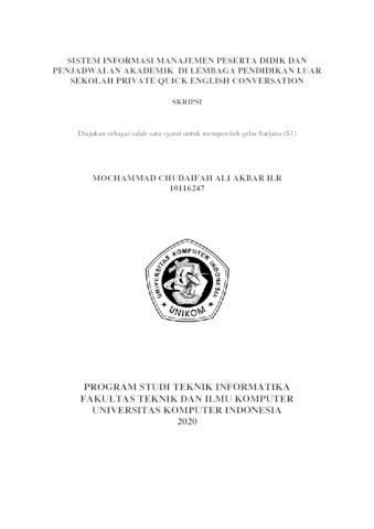 Rafsanjani, Mochammad Chudaifah Ali Akbar Hazemi (2020) Sistem Informasi Manajemen Peserta Didik Dan Penjadwalan Akademik Di Lembaga Pendidikan Luar Sekolah Private Quick English Conversation. Other thesis, Program Studi Teknik Informatika.