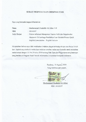 20.10116247_MOCHAMMAD CHUDAIFAH ALI AHR_SURAT PERNYATAAN ORISINALITAS.pdf - Published Version