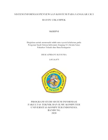 Kusuma, Desi Apriany (2020) Sistem Informasi Penyewaan Kostum Pada Sanggar Cici Bayoy Cikampek. Other thesis, Universitas Komputer Indonesia.