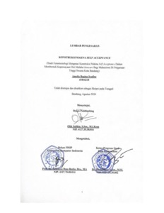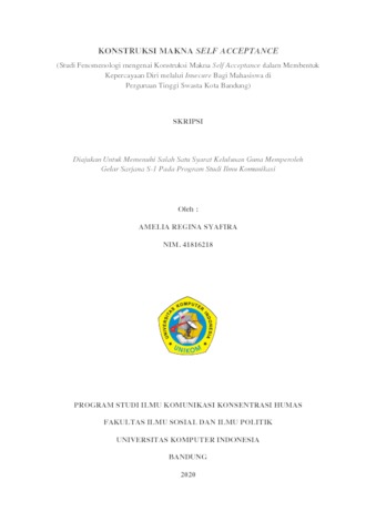Syafira, Amelia Regina (2020) Konstruksi Makna Self Acceptance (Studi Fenomenologi mengenai Konstruksi Makna Self Acceptance dalam Membentuk Kepercayaan Diri melalui Insecure Bagi Mahasiswa di. Other thesis, Universitas Komputer Indonesia.