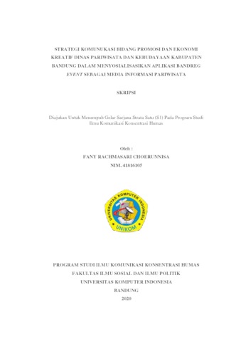 Choerunnisa, Fany Rachmasari (2020) Strategi Komunikasi Bidang Promosi Dan Ekonomi Kreatif Dinas Pariwisata Dan Kebudayaan Kabupaten Bandung Dalam Menyosialisasikan Aplikasi Bandreg Event Sebagai Media Informasi Pariwisata. Other thesis, Universitas Komputer Indonesia.