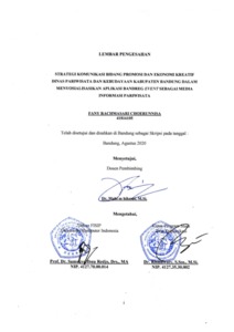 | Uncontrolled Keywords: | Strategi Komunikasi, Sosialisasi, Informasi Pariwisata, Promosi Wisata |