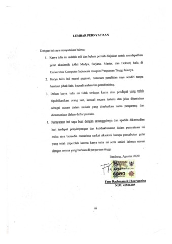 UNIKOM_FANY RACHMASARI C_LEMBAR PERNYATAAN KEASLIAN.pdf - Published Version