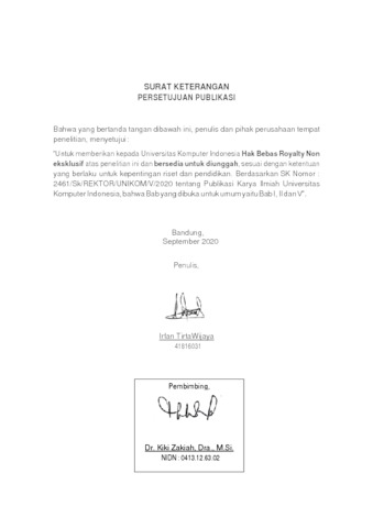 UNIKOM_IRFAN TIRTAWIJAYA_LEMBAR PERNYATAAN.pdf - Published Version