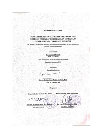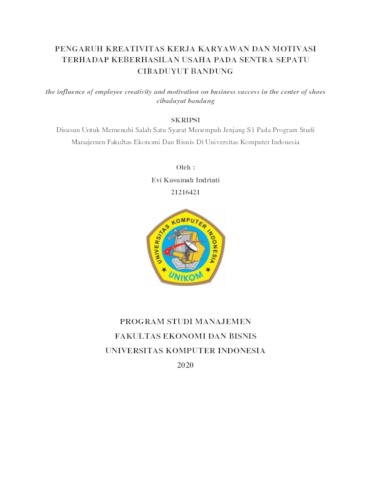 Indriati, Evi Kusumah (2020) Pengaruh Kreativitas Kerja Karyawan Dan Motivasi Terhadap Keberhasilan Usaha Pada Sentra Sepatu Cibaduyut Bandung. Other thesis, Universitas Komputer Indonesia.