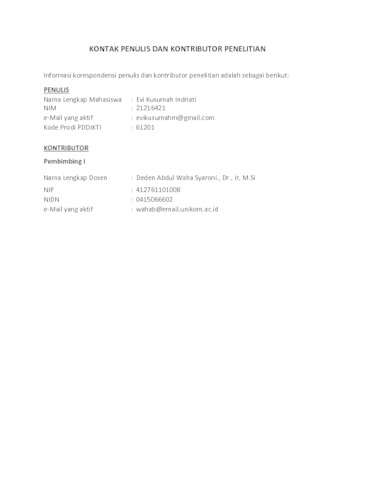 UNIKOM_EVI KUSUMAH INDRIATI_KONTAK PENULIS DAN KONTRIBUTOR PENELITIAN.pdf - Published Version