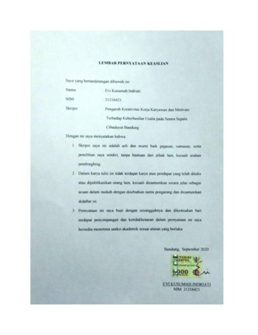UNIKOM_EVI KUSUMAH INDRIATI_LEMBAR PERNYATAAN KEASLIAN.pdf - Published Version