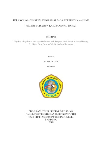 Fatwa, Panji (2018) Perancangan Sistem Informasi Pada Perpustakaan Smp Negeri 1 Cisarua Kab. Bandung Barat. Other thesis, Universitas Komputer Indonesia.