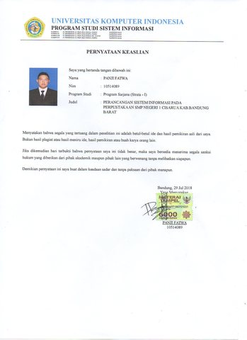 UNIKOM_Panji Fatwa_Pernyataan Keaslian.jpg - Published Version