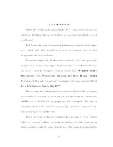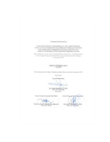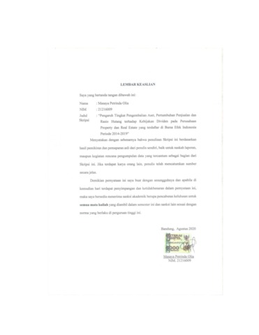 Olia, Masaya Petrinda (2020) Pengaruh Tingkat Pengembalian Aset, Pertumbuhan Penjualan Dan Rasio Hutang Terhadap Kebijakan Dividen Pada Perusahaan Property Dan Real Estate Yang Terdaftar Di Bursa Efek Indonesia Periode 2014-2019. Other thesis, Universitas Komputer Indonesia.