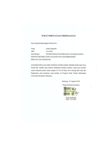 19.10113209_PURBA SARIPUDIN_SURAT KETERANGAN ORISINALITAS.pdf - Published Version