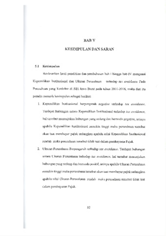 Pengujian Kepemilikan Institusional, dan Ukuran Perusahaan terhadap tingkat Tax Avoidance. Analisis penelitian menggunakan uji regresi linier berganda dengan menguunakan software SPSS 16.0 Berdasarkan hasil uji analisis linier berganda terdapat pengaruh negative antara Kepemilikan Institusional dengan Tax Avoidance sementara ukuran perusahaan berpengaruh positive terhadap Tax Avoidance.