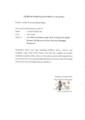 Nur, Ahcmad Fahryan (2021) Identifikasi Perubahan Luas Lahan Terbangun Di Sekitar Bandara Aji Muhammad Sultan Sulaiman Sepinggan Balikpapan. Other thesis, Universitas Komputer Indonesia.