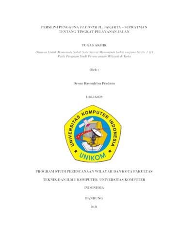 Pradana, Devan Rasendriya (2021) Persepsi Pengguna Fly Over Jl. Jakarta – Supratman Tentang Tingkat Pelayanan Jalan. Other thesis, Universitas Komputer Indonesia.