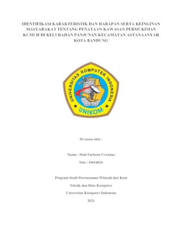 Uswanas, muh Fachran (2021) Identifikasi Karakteristik Dan Harapan Serta Keinginan Masyarakat Tentang Penataan Kawasan Permukiman Kumuh Di Kelurahan Panjunan Kecamatan Astanaanyar Kota Bandung. Other thesis, Universitas Komputer Indonesia.