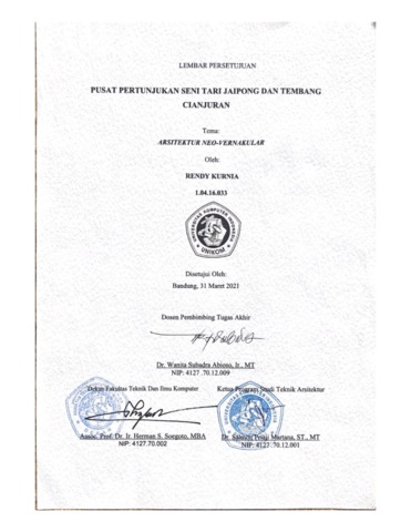 Kurnia, Rendi (2021) Pusat Pertunjukan Seni Tari Jaipong Dan Tembang Cianjuran. Other thesis, Universitas Komputer Indonesia.