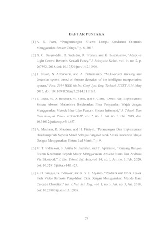 | Uncontrolled Keywords: | Lampu adaptive, pengolahan citra, Haar Cascade Clasifier, gerak servo, lampu LED. |