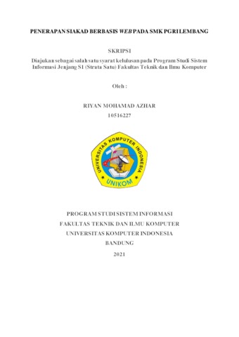 Azhar, Riyan Mohamad (2021) Penerapan Siakad Berbasis Web Pada Smk Pgri Lembang. Other thesis, Universitas Komputer Indonesia.