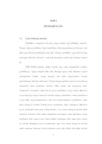 SMK PGRI Lembang merupakan sekolah yang beralamatkan di lembang SMK PGRI Lembang mempunyai tiga jurusan yaitu jurusan akomodasi perhotelan,kuliner dan teknik komputer jaringan. Tujuan dari penelitian ini adalah untuk merancang dan membuat aplikasi SMK PGRI Lembang untuk mempermudah kegiatan-kegiatan yang berhubungan dengan pendaftaran siswa baru,pembagian kelas,penjadwalan,materi dan pengumpulan tugas Metode penelitian yang digunakan adalah metode deskritif. Dan metode pendekatan sistem yang digunakan adalah objek menggunakan UML(unified modeling language) sebagai alat bantu untuk merancang sistem yang akan dibuat dengan menggunaka metode pengembangan sistem waterfall. Hasil perancangan sistem ini diwujudkan dalam bentuk website. Dalam pembangunan sistem informasi ini menggunakan bahasa pemograman php dan MySQL sebagai databasenya. Dengan adannya website ini diharapkan dapat memudahkan proses pendaftaran siswa baru,pendaftaran ulang dan juga pembagian materi dan tugas.