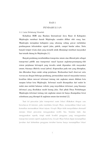 Majalengka sedang gencar dalam pembangunan daerah, baik pabrik dan tempat wisata. Banyak masyarakat luar yang tertarik untuk datang ke Majalengka baik untuk mencari pekerjaan ataupun untuk liburan. Banyak masyarakat yang menggunakan kendaraan pribadi untuk trasportasi tapi tidak banyak juga yang menggunakan angkutan umum. Berdasarkan hasil observasi dan wawancara banyak masyarakat yang menggunakan angkutan umum masih kurang atau bahkan belum tahu informasi tentang angkutan umum, seperti harus naik apa dan dari mana untuk ke Majalengka, ada angkutan umum apa saja untuk sampai ke Majalengka. Maka dibutuhkan sebuah media informasi yang memberikan informasi mengenai angkutan umum yang ada di Majalengka. Maka dari itu dibangun sebuah website chatbot yang dapat memberikan informasi tentang angkutan umum di Majalengka. Chatbot ini dibangun menggunakan library Chatterbot untuk proses respon otomatis serta Google Maps untuk memberikan informasi rute. Adapaun hasil pengujian menyimpulkan bahwa pengguna setuju website chatbot yang dibangun dapat menjadi solusi untuk permasalahan diatas, yakni sebagai media informasi angkutan umum di Majalengka, selain itu pengguna juga terbantu dengan adanya maps untuk menampilkan rute.
