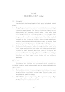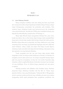 Bunga memiliki bentuk dan warna yang bermacam-macam. Klasifikasi citra alami bunga memiliki kesulitannya tersendiri. Dimana gambar citra bunga tersebut memiliki objek latar seperti dedaunan, cabang, rumput ataupun langit. Preprocessing dan Segmentasi diperlukan untuk dapat memisahkan latar depan dari latar belakang sebaik mungkin. Penelitian ini bertujuan untuk melakukan pengenalan bunga berdasarkan bentuk dan warna menggunakan metode ekstraksi hsv, eccentricity dan metric dengan klasifikasi naïve bayes. Gambar yang dimasukkan akan di preprocessing dan segmentasi terlebih dahulu agar dapat memisahkan latar depan dari latar belakang sehingga proses ekstraksi ciri bunga mendapatkan hasil yang baik. Setelah ekstraksi ciri didapatkan, ciri tersebut akan diklasifikasikan menggunakan metode naive bayes. Hasil akurasi yang didapatkan menggunakan 200 data latih yang kemudian diuji dengan 50 data berdasarkan ekstraksi fitur bentuk dan warna menggunakan metode klasifikasi naïve bayes menghasilkan tingkat akurasi yang baik sebesar 88% dengan kategori klasifikasi yang baik.