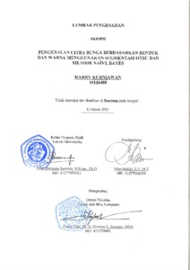Kurniawan, Harry (2021) Pengenalan Citra Bunga Berdasarkan Bentuk Dan Warna Menggunakan Segmentasi Otsu Dan Metode Naïve Bayes. Other thesis, Universitas Komputer Indonesia.