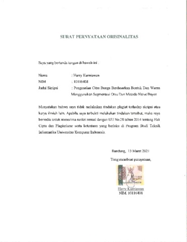 20. UNIKOM_Harry Kurniawan_SURAT KETERANGAN ORISINALITAS.pdf - Published Version