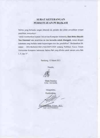 UNIKOM_Ilham Prasetyo_Surat Keterangan Persetujuan Publikasi.pdf - Published Version