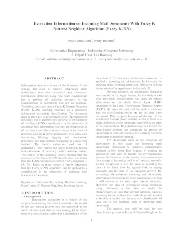 Sulaiman, Adam (2018) Ekstraksi Informasi Pada Dokumen Surat Masuk Menggunakan Algoritma Fuzzy K-Nearest Neighbour (Fuzzy K-NN). Other thesis, Universitas Komputer Indonesia.