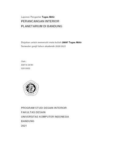 Anita, Dewi (2021) Perancangan Interior Planetarium Di Bandung. Other thesis, Universitas Komputer Indonesia.