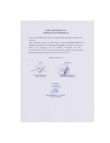 17.UNIKOM_M Zaidan Musyaffa Z_Surat Keterangan Persetujuan Publikasi.pdf - Published Version