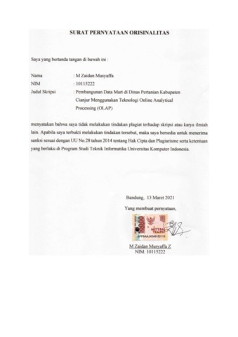 Musyaffa Z, M Zaidan (2021) Pembangunan Data Mart Di Dinas Pertanian Kabupaten Cianjur Menggunakan Teknologi Online Analytical Processing (OLAP). Other thesis, Universitas Komputer Indonesia.
