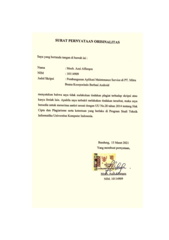 Alfurqon, Moch. Azzi (2021) Pembangunan Aplikasi Maintenance Service Di Pt. Mitra Buana Koorporindo Berbasis Android. Other thesis, Universitas Komputer Indonesia.