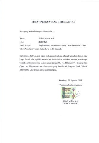 UNIKOM_HABIB_MUTHA_ARIF_SURAT KETERANGAN ORISINALITAS.jpg - Published Version