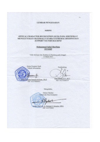 Shorfana, Muhammad Iqbal (2021) Optical Character Recognition (Ocr) Pada Sertifikat Menggunakan Maximally Stable Extremal Regions Dan Support Vector Machine. Other thesis, Universitas Komputer Indonesia.