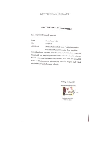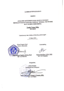 Miko, Nanda Temas (2021) Analisis Sentimen Pada Kasus Covid19 Menggunakan Convolutional Neural Network Dan Word Embedding. Other thesis, Universitas Komputer Indonesia.