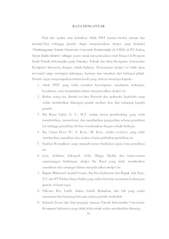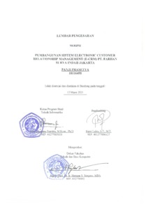 Prasetya, Panji (2021) Pembangunan Sistem Electronic Customer Relationship Management (E-Crm) PT. Farhan Surya Indah Jakarta. Other thesis, Universitas Komputer Indonesia.