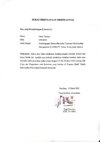 UNIKOM_PANJI PRASETYA_SURAT KETERANGAN ORISINALITAS.pdf - Published Version