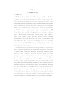PT. Farhan Surya Indah atau Farhan Surya Indah Tours & Travel merupakan sebuah perusahaan yang bergerak dalam bidang pelayanan jasa dalam pelayanan umroh. Berdasarkan hasil wawancara yang dilakukan dengan Ibu Een Endrawati selaku Direktur Utama dan Ibu Nur Faizah selaku pihak Divisi Marketing di PT. Farhan Surya Indah, divisi marketing mengalami kesulitan dalam menentukan pelanggan yang akan mendapatkan voucer, dikarenakan perusahaan belum mengetahui pelanggan yang memiliki potensi besar dalam menggunakan jasa perusahaan. Permasalahan selanjutnya adalah divisi marketing mengalami kesulitan dalam menentukan paket umroh yang sesuai dengan kebutuhan pelanggan maupun calon pelanggan baru. Permasalahan selanjutnya adalah beberapa pelanggan merasa kesulitan dalam memesan paket umroh kepada perusahaan karena pemesanan hanya dilakukan melalui koordinator lapangan daerah masing-masing kota dan datang langsung ke perusahaan. Electronic Customer Relationship Management (E-CRM) adalah strategi bisnis yang terdiri dari software dan layanan yang didesain untuk meningkatkan keuntungan, pendapatan dan kepuasan pelanggan. Konsep CRM diawali dengan mengenal, mengetahui, dan menggali apa yang dibutuhkan dan diharapkan oleh pelanggan, sehingga perusahaan dapat lebih mudah untuk mewujudkan apa yang dibutuhkan oleh pelanggannya. Jenis CRM yang akan digunakan adalah Analitycal CRM, pengambilan keputusan dengan metode ini dilakukan setelah melalui proses analisis, pemodelan dan evaluasi terhadap data yang tersimpan untuk menghasilkan sebuah hubungan yang menguntungkan antara perusahaan dan pelanggan. Berdasarkan hasil dari pengujian, sistem yang dibangun telah dapat menyelesaikan permasalahan yang telah dirumuskan sebelumnya, yaitu membantu divisi marketing dalam menentukan pelanggan yang akan mendapatkan voucer kepada pelanggan berdasarkan tingkat segmentasi pelanggan dengan analisis RFM, dapat membantu divisi marketing dalam menentukan paket umroh yang akan ditawarkan kepada pelanggan yang disesuaikan dengan kebutuhan pelanggan, serta memudahkan pelanggan dalam memesan paket umroh secara online.