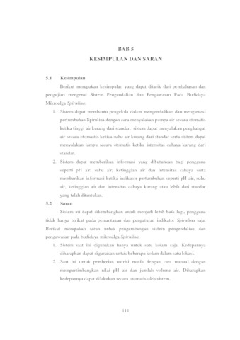 Dalam pembudidayaan Spirulina terdapat beberapa indikator pertumbuhan yang harus terpenuhi, diantaranya; pH air, suhu air, ketinggian air dan intensitas cahaya. Belum adanya sistem yang dapat memberikan informasi ketika indikator pertumbuhan Spirulina yang tidak terpenuhi, menjadi kendala yang dialami oleh Amorina Farm karena, pemantauan masih dilakukan secara manual dengan durasi yang terbatas. Oleh karena itu, perlu dibangun sebuah sistem untuk memberikan informasi ketika terjadi perubahan sehingga dapat langsung ditangani. Sistem Pengendalian dan Pengawasan Pada Budidaya Mikroalga Spirulina merupakan sebuah sistem yang dibangun menggunakan teknologi Internet of Things (IoT), berbasis website yang terintegrasi dengan mikrokontroler untuk memantau perubahan nilai setiap indikatornya. Nilai-nilai tersebut nantinya akan dikirim ke server agar pengelola dapat melihat perubahan nilai indikator secara online. Dalam pembangunan perangkat lunak, digunakan metode prototype dengan tahapan commnication, quick plan, modeling quick design, construction of prototype, serta development delivery and feedback. Berdasarkan hasil dari penelitian yang telah dilakukan, sistem telah berjalan sesuai dengan fungsionalnya dan dapat memberikan informasi ketika indikator pertumbuhan tidak sesuai dengan standar yang telah ditentukan. Rata-rata nilai galat dari sensor yang dikirimkan ke server adalah kurang dari .030%. Oleh karena itu secara umum sistem yang telah dibangun sudah dapat membantu pengelola Amorina Farm dalam mengendalikan dan mengawasi pertumbuhan Spirulina.