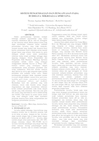 Hardianto, Thomas Aquinas Kiki (2018) Sistem Pengendalian Dan Pengawasan Pada Budidaya Mikroalga Spirulina. Other thesis, Universitas Komputer Indonesia.