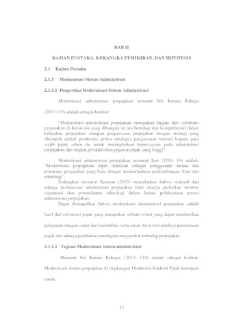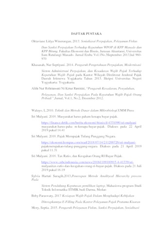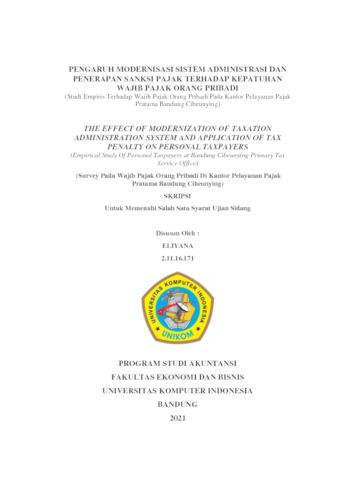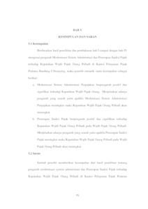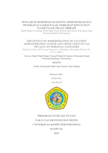Penelitian ini bertujuan untuk mengetahui pengaruh modernisasi sistem administrasi dan penerapan sanksi pajak terhadap kepatuhan wajib pajak orang pribadi . Sampel dari penelitian ini adalah Wajib Pajak yang terdaftar di Kantor Pelayanan Pajak (KPP) Pratama Bandung Cibeuying.