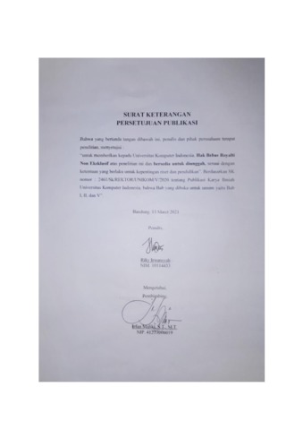 UNIKOM_RIKY IRWANSYAH_SURAT KETERANGAN PESETUJUAN PUBLIKASI.pdf - Published Version
